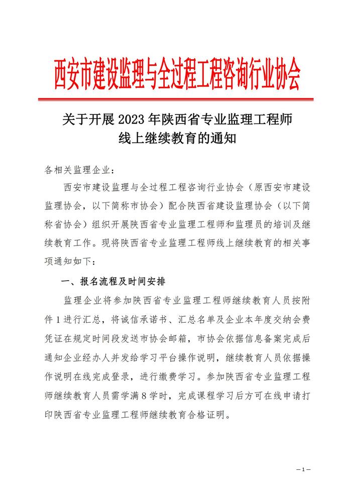 关于开展2023年陕西省专业监理工程师线上继续教育的通知发表时间:2023-03-31 16:55 关于开展2023年陕西省专业监理工程师线上继续教育的通知日期: 2023-3-31 15:50:37各监理企业: 陕西省建设监理协会 2023年3月31日 ![]() ![]() ![]() ![]() http://www.sxjianli.com/listshow.asp?id=5646 |